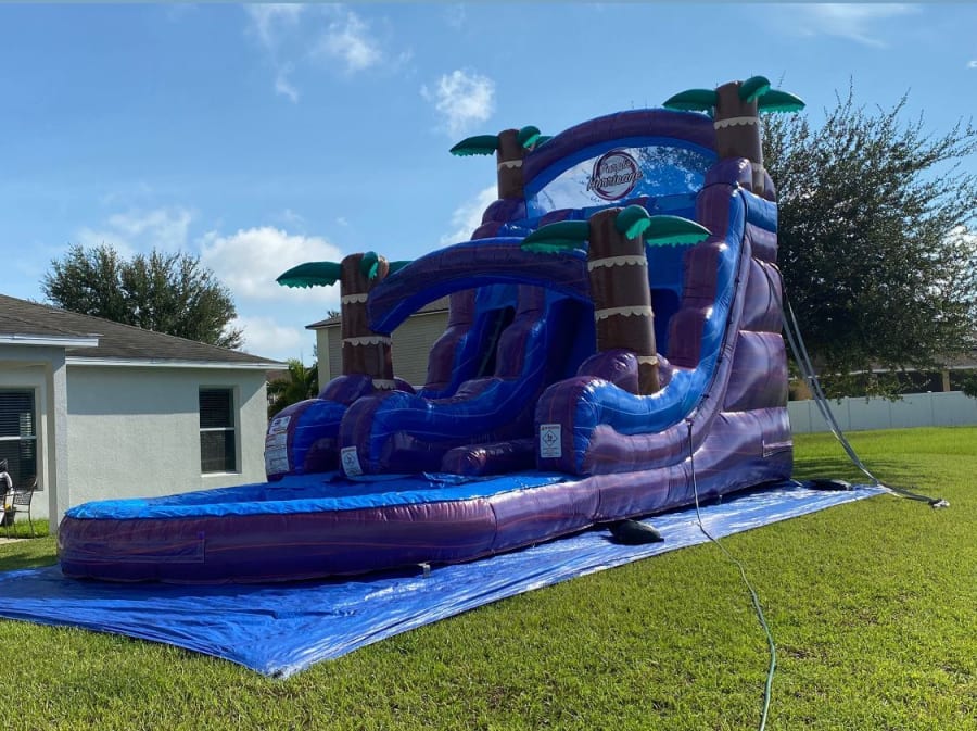 The 18 Foot Purple Hurricane® Double Lane Deep Pool is a show-stopping water slide built for epic backyard parties, rentals, and summer events. This double-lane water slide delivers side-by-side racing, a big splash, and vivid purple styling that grabs attention. It’s engineered for fun, durability, and repeat use. Perfect for families, event planners, and party rental businesses. 🌊🏊♂️