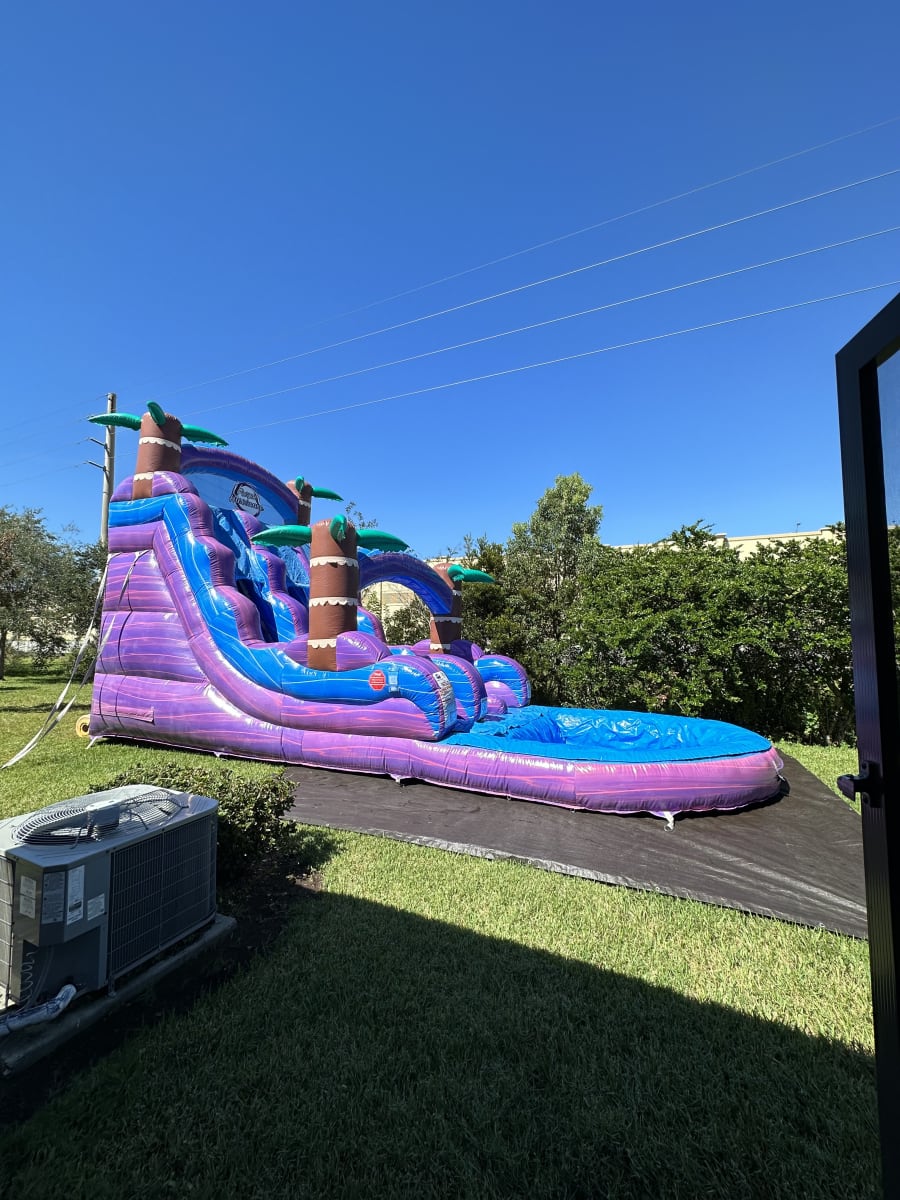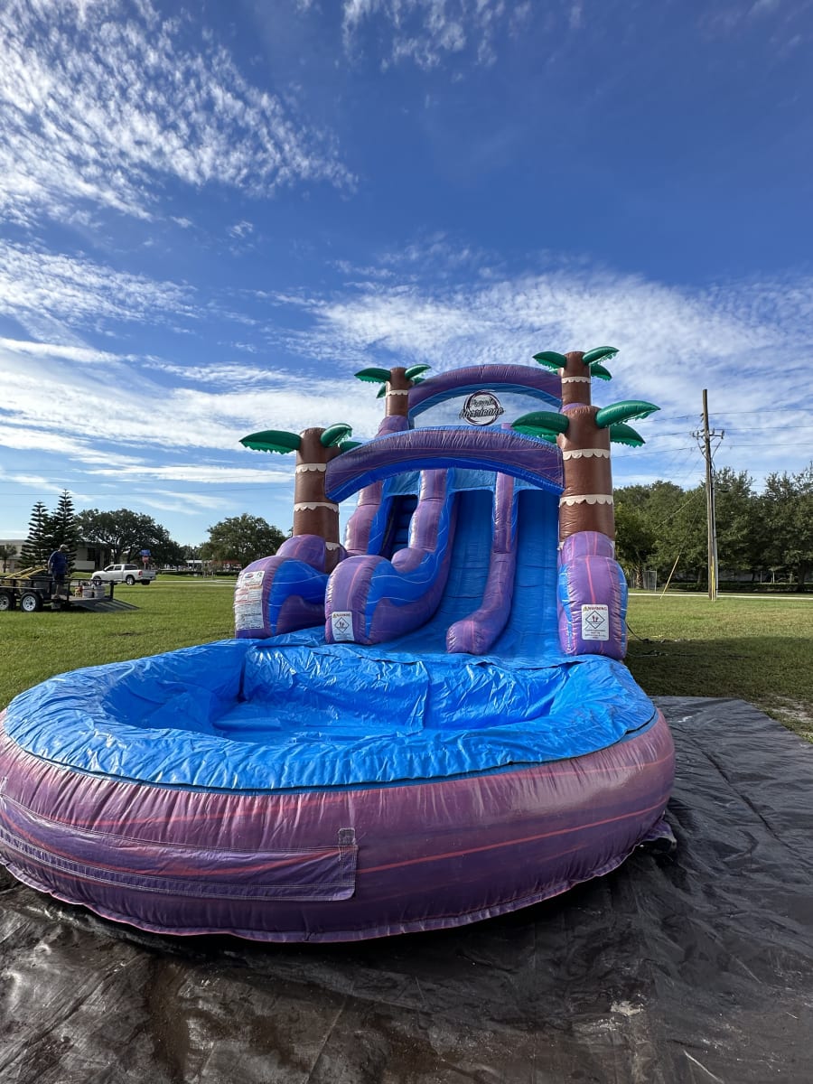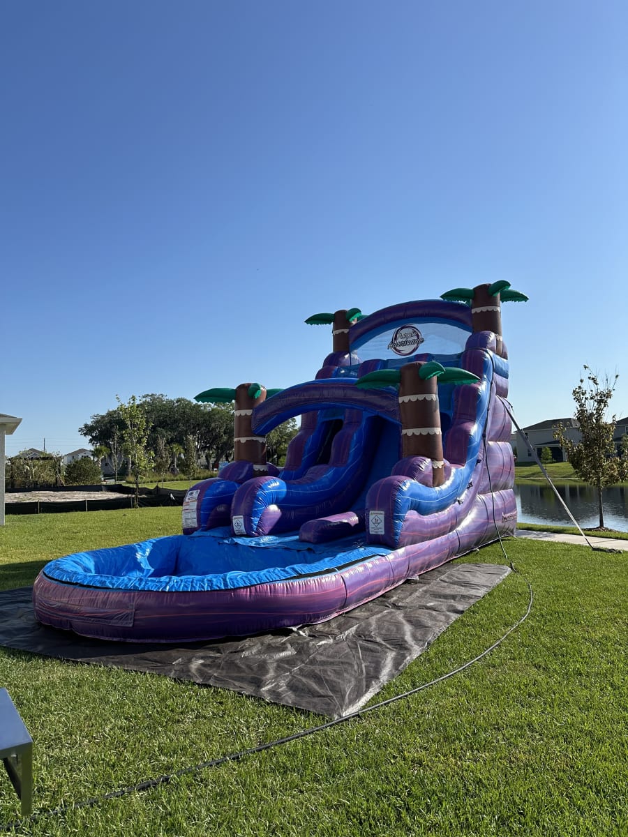 Bring excitement to your next event with the 18 Foot Purple Hurricane® Double Lane Deep Pool. Book it, set it up, and watch the fun unfold. Contact us to reserve this showpiece slide today! 🚚🎈